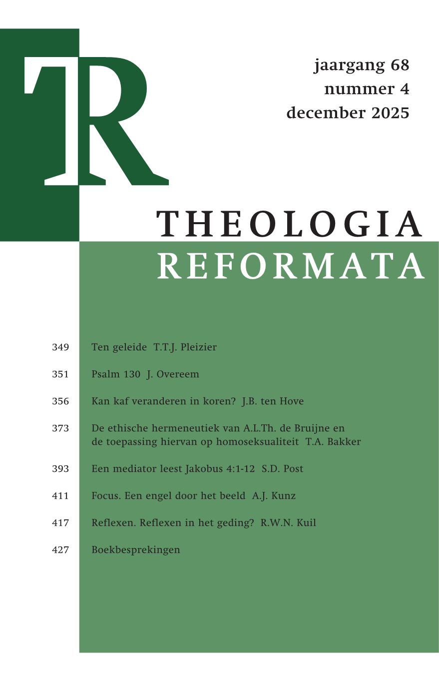 Meditatie. Psalm 130 Auteurs J. Overeem DOI: https://doi.org/10.21827/TR.68.4.351-355 PDF Gepubliceerd 2025-12-01 Nummer Vol 68 Nr 4 (2025) Sectie Meditatie